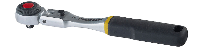 Mit Umschaltfunktion direkt auf dem Ratschenmechanismus. Mehrere der 52 Zähne rasten gleichzeitig ein und übertragen extrem hohe Drehmomente. Entriegelungs-Mechanismus: Lösen der Einsätze durch Knopfdruck. Kopf und Schaft aus einem Stück CrV-Stahl geschmiedet, 2x vernickelt und matt-verchromt. Griff aus öl- und säurefestem TPR (Thermoplastic Rubber) mit praktischer Bohrung zum Aufhängen.